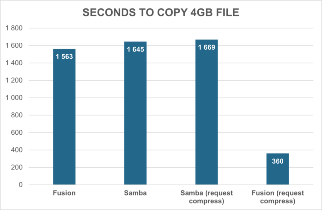 But when I ask the SMB server to compress, Fusion went from taking 27 minutes to only 6 minutes. An 80% reduction in copy time.